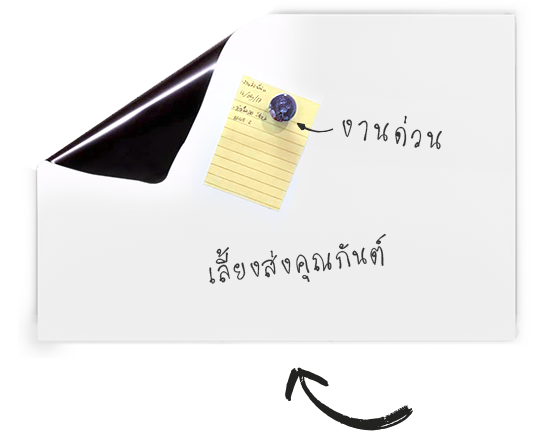 ลูกค้าสามารถเปลี่ยนห้องนอนหรือห้องนั่งเล่นของท่านเป็นห้องทำงานได้โดยง่าย เพียงติดตั้ง ไวท์บอร์ดแม่เหล็กแบบพกพา ม้วนเก็บได้ (Portable Whiteboard) (ติดตั้งชั่วคราว) เมื่อใช้งาน และลอกออกเมื่อเลิกใช้งาน เพียงเท่านี้ก็ช่วยให้ท่านได้ List รายการทำงานต่างๆ หรือ Brainstorm ได้อย่างง่ายดายอีกด้วย